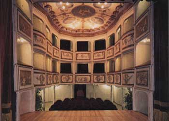 Nel cuore del paese, di un paese a forma di cuore quale è la configurazione di Monte Castello di Vibio (in Umbria - provincia di Perugia) sulla sommità del suo colle, a 422 metri di altitudine si trova un inestimabile struttura: un gioiello unico "il teatro più piccolo del mondo". Novantanove posti per sognare! Suddivisi tra i palchi e la platea.